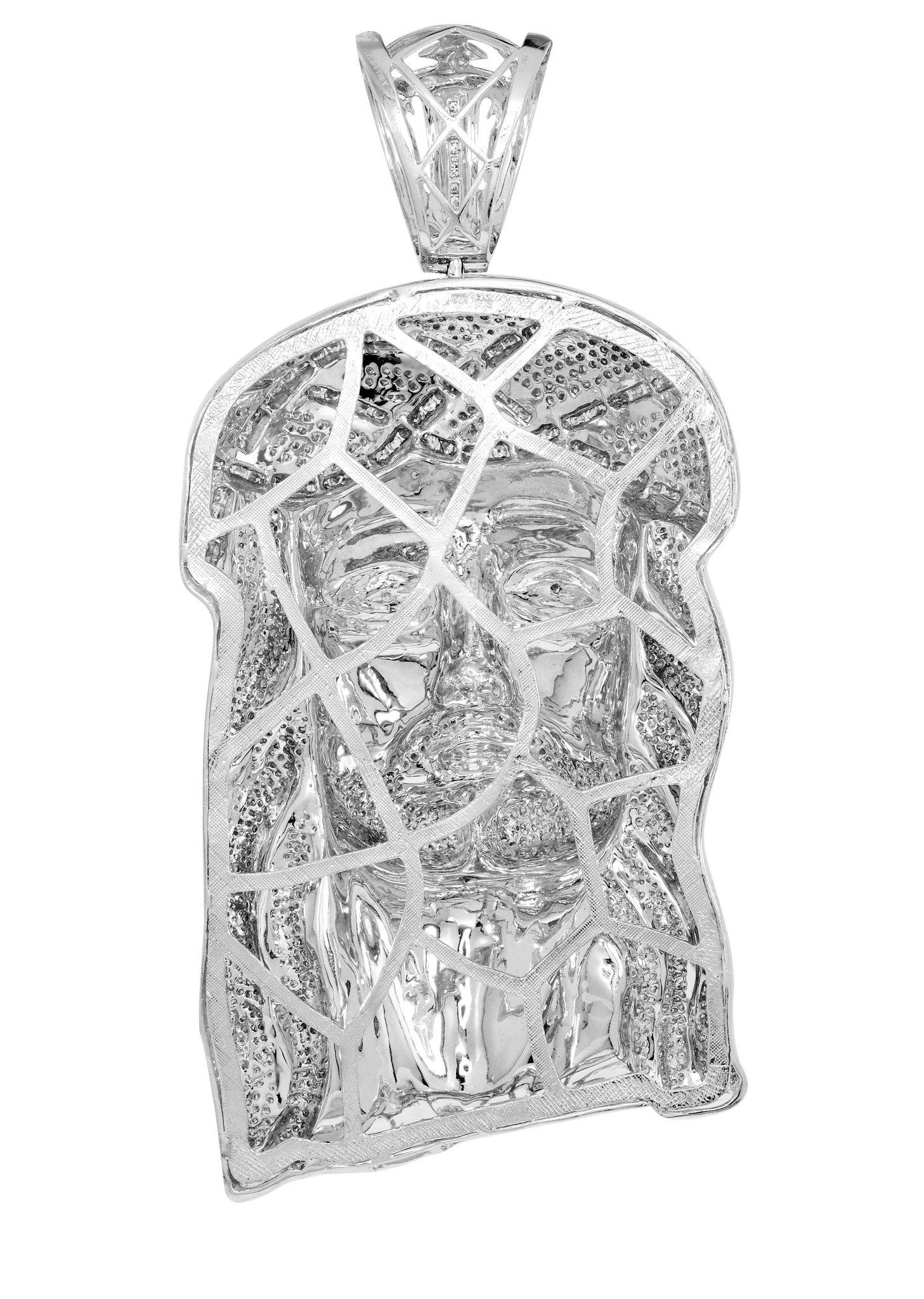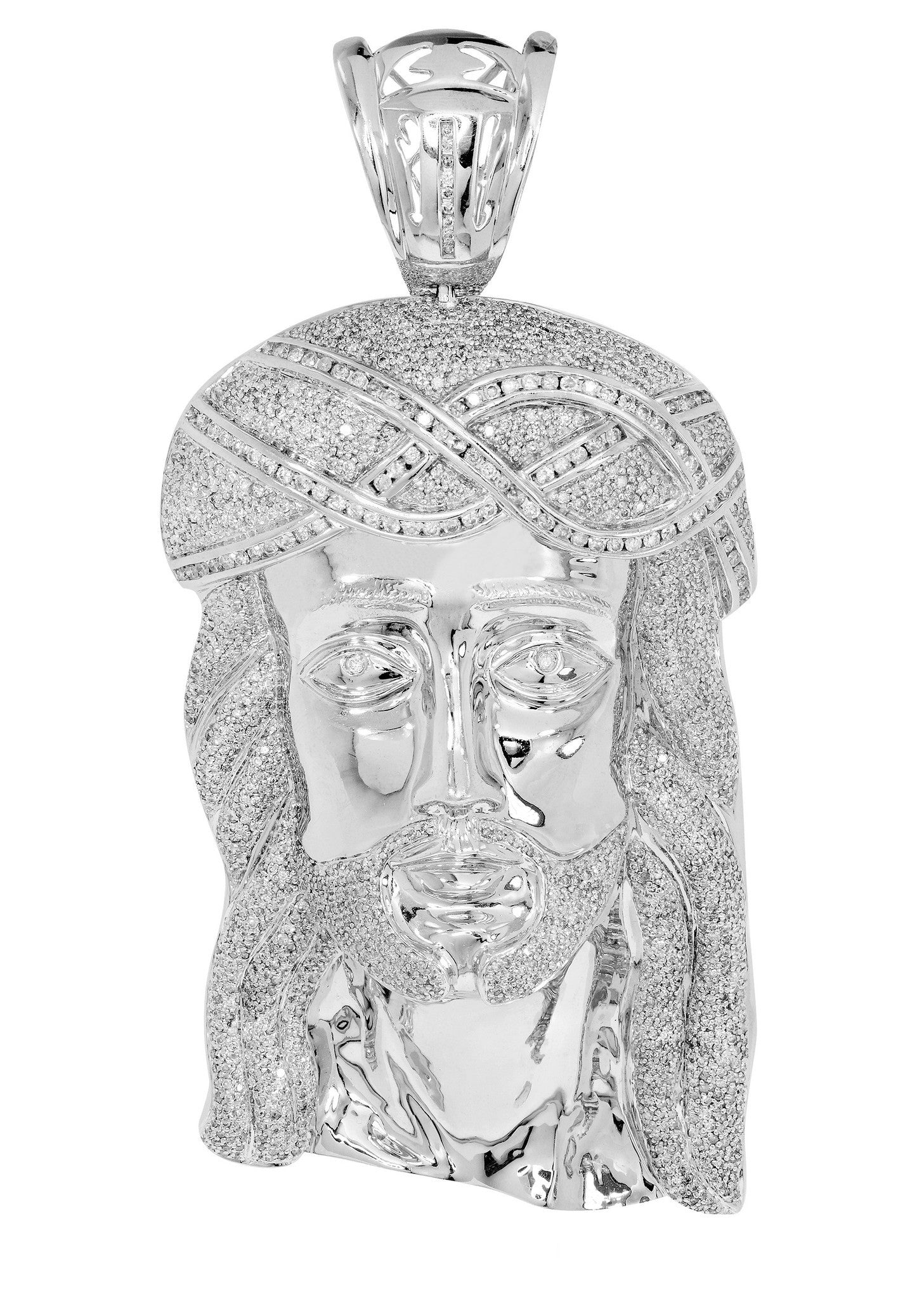 Jesus Head Pendant In 10K White Gold Weighing 114 Grams With 13 Carats Of Colorless / Near Colorless Eye Clean quality Diamonds