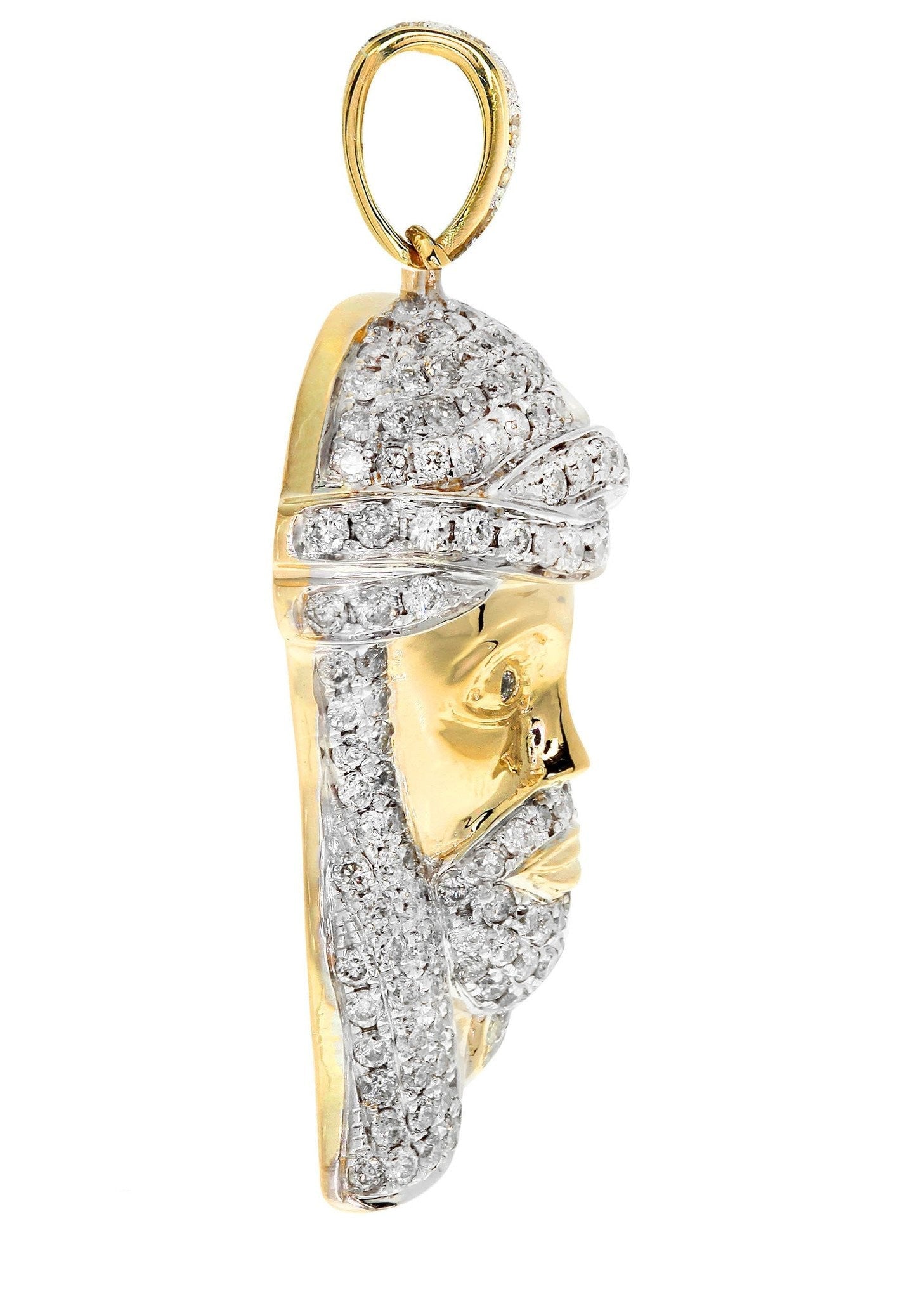 Jesus Head Pendant In 10K Yellow Gold Weighing 12.48 Grams With 2.43 Carats Of Colorless / Near Colorless Eye Clean quality Diamonds