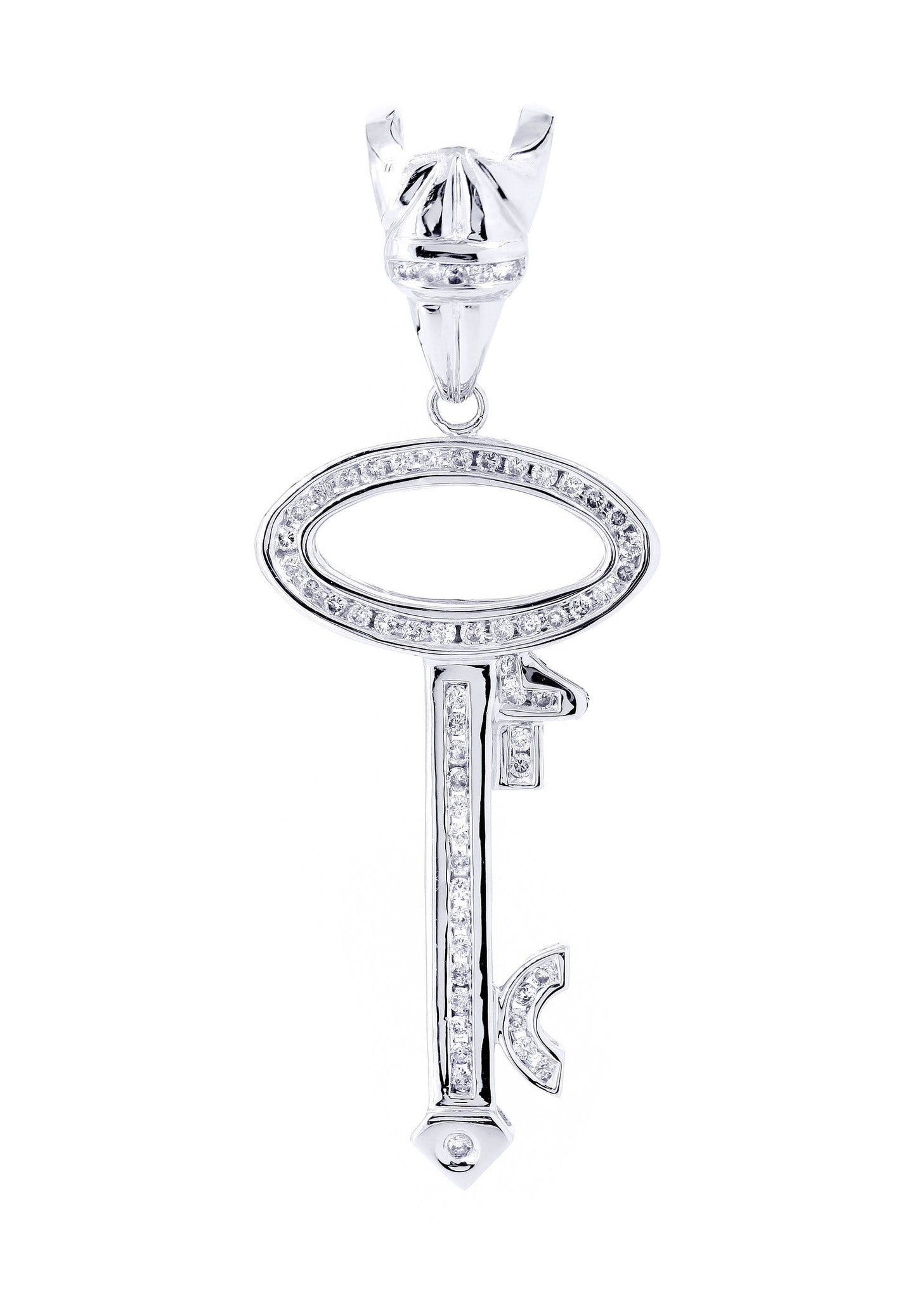 14K White Gold Key Pendant With Approximately 0.53 Carats Of Colorless / Near Colorless Eye Clean quality Diamonds And 5.37 Grams. This Pendant Has An Average Length Of 55 Mm And A Width Of 20 Mm.