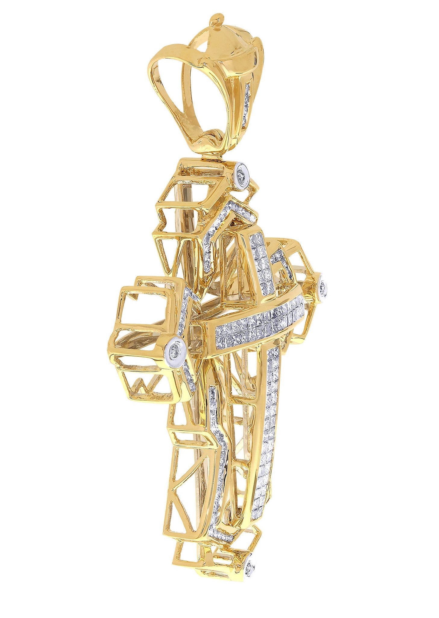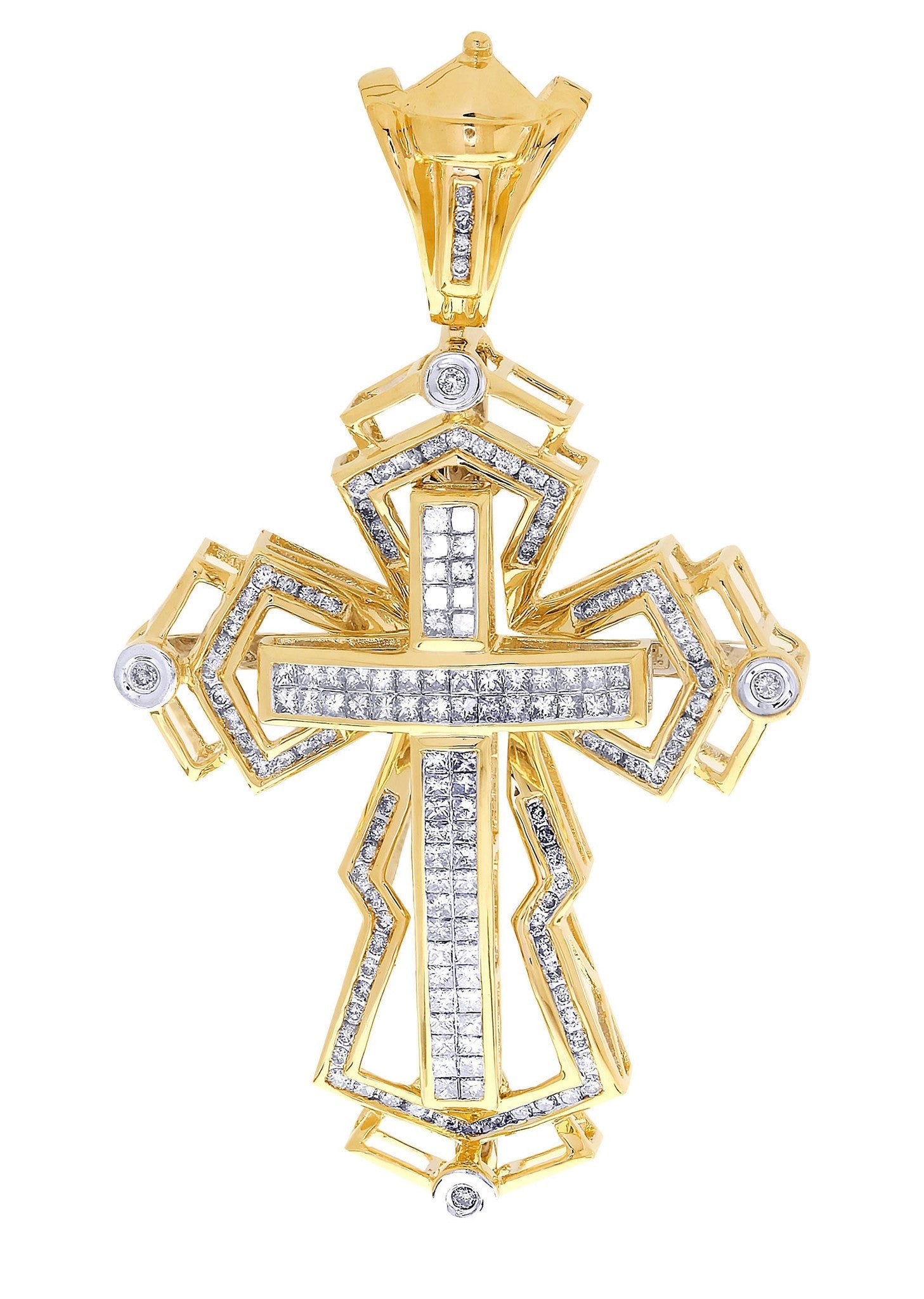 14K Yellow Gold Cross Pendant With Approximately 2.63 Carats Of Colorless / Near Colorless Eye Clean quality Diamonds And 19.17 Grams