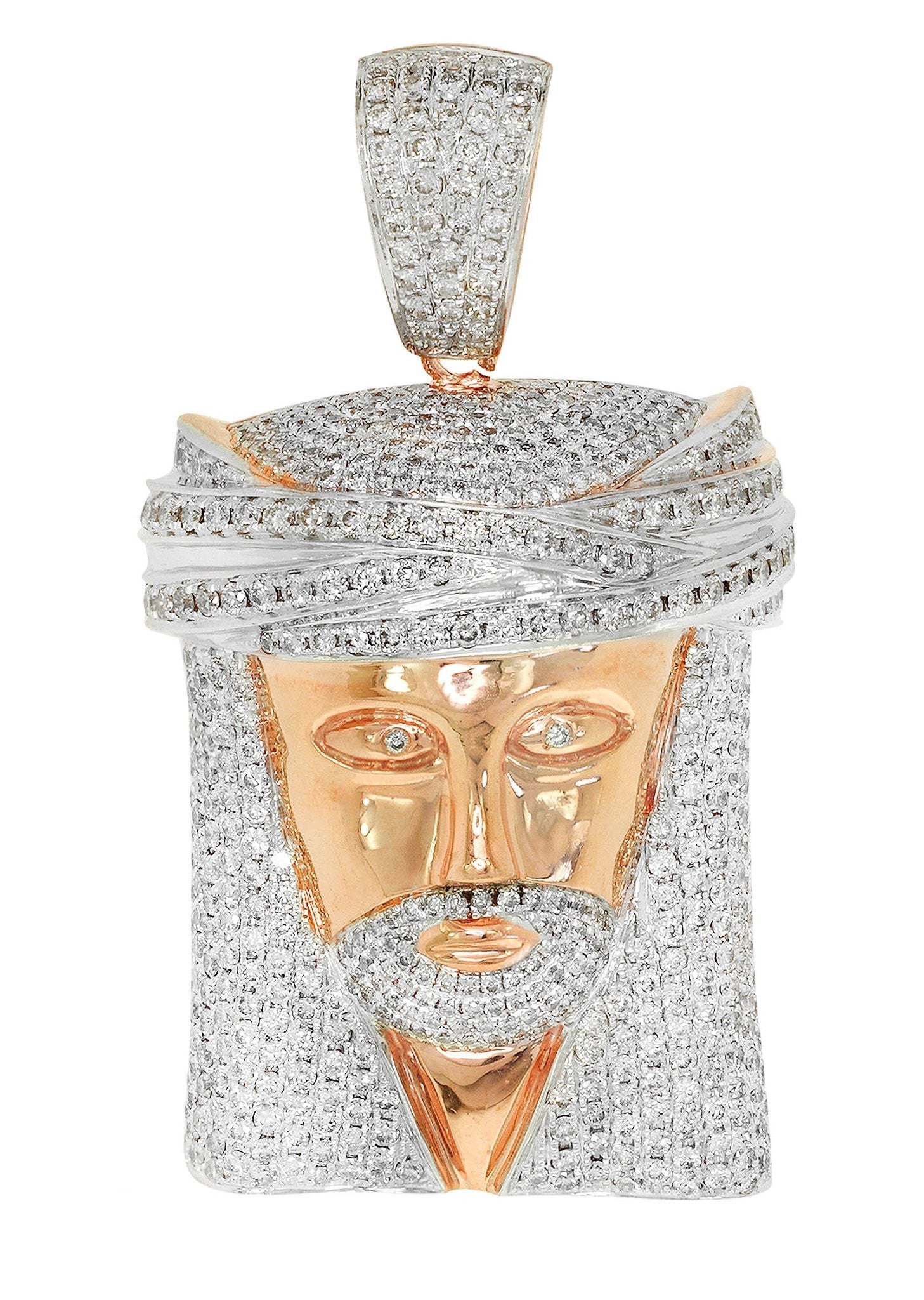 Jesus Head Pendant In 10K Rose Gold Weighing 42 Grams With 8.69 Carats Of Colorless / Near Colorless Eye Clean quality Diamonds
