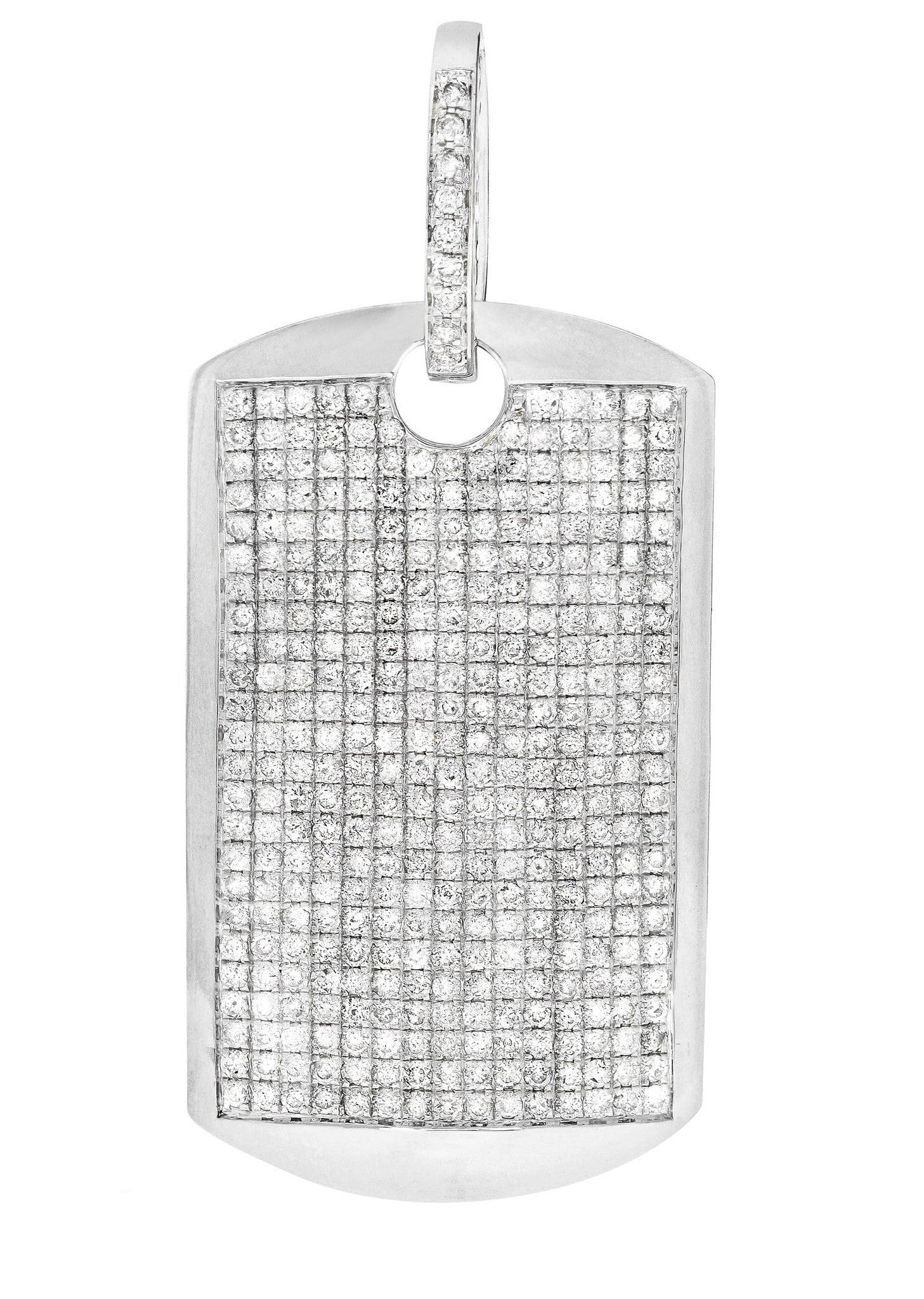 Dog Tag Pendant In 10K White Gold Weighing 14.84 Grams With 5.15 Carats Of Colorless / Near Colorless Eye Clean quality Diamonds