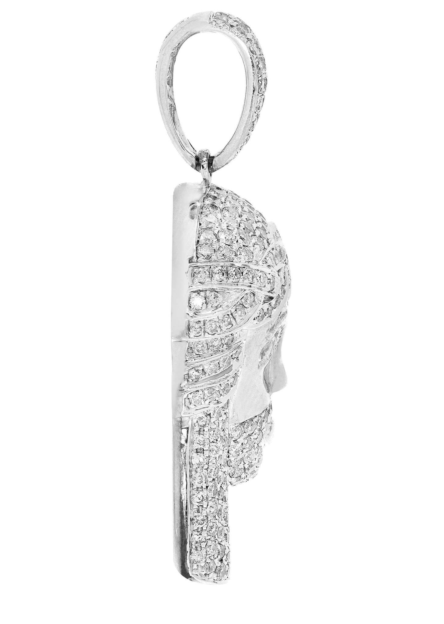 Jesus Head Pendant In 10K White Gold Weighing 15.02 Grams With 3.12 Carats Of Colorless / Near Colorless Eye Clean quality Diamonds
