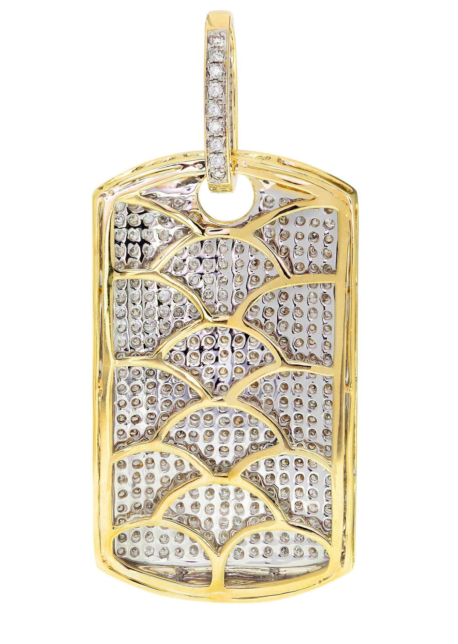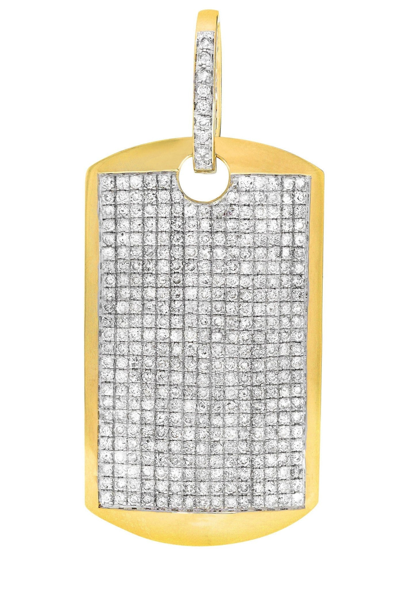 Dog Tag Pendant In 10K Yellow Gold Weighing 14.44 Grams With 5.16 Carats Of Colorless / Near Colorless Eye Clean quality Diamonds