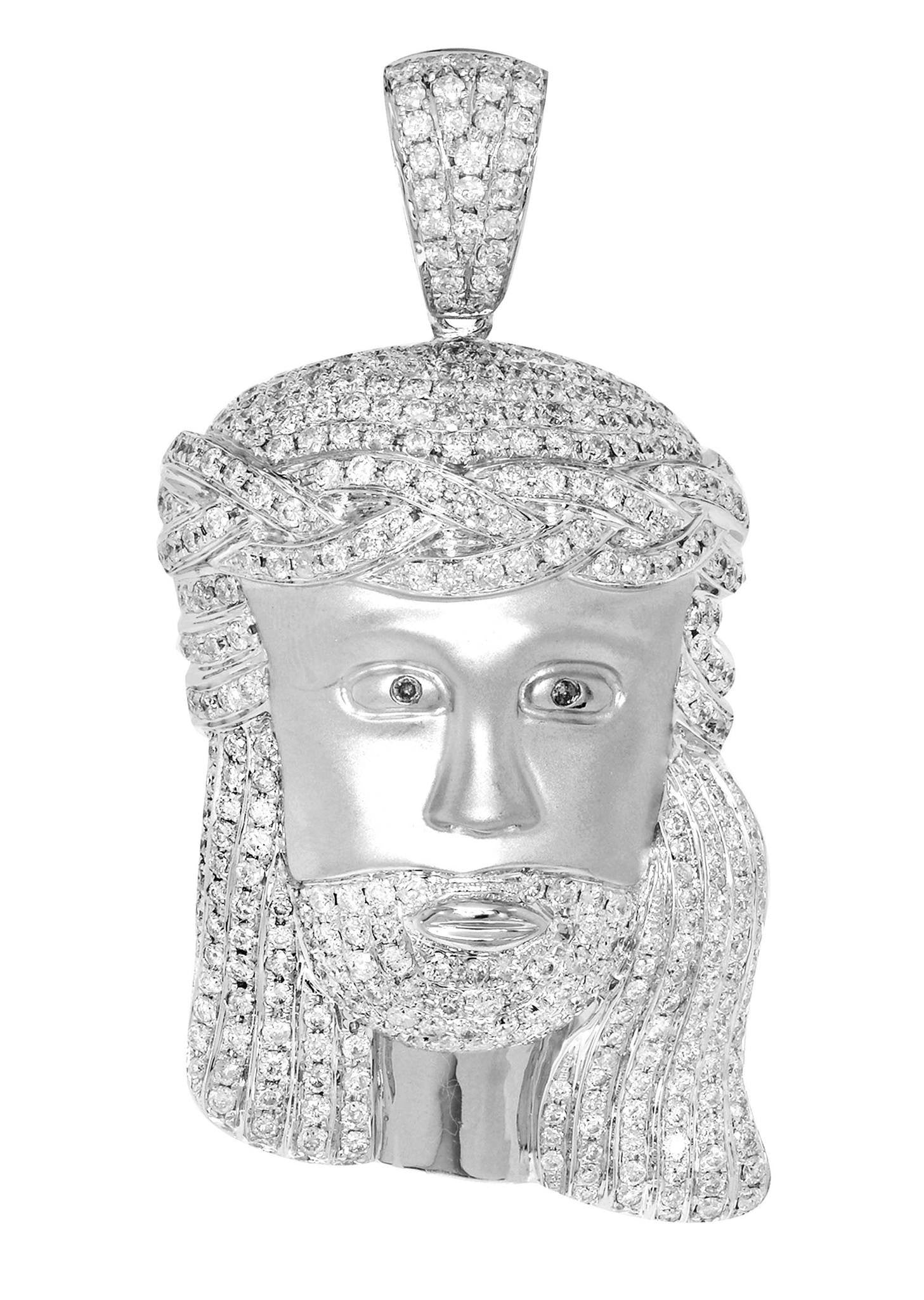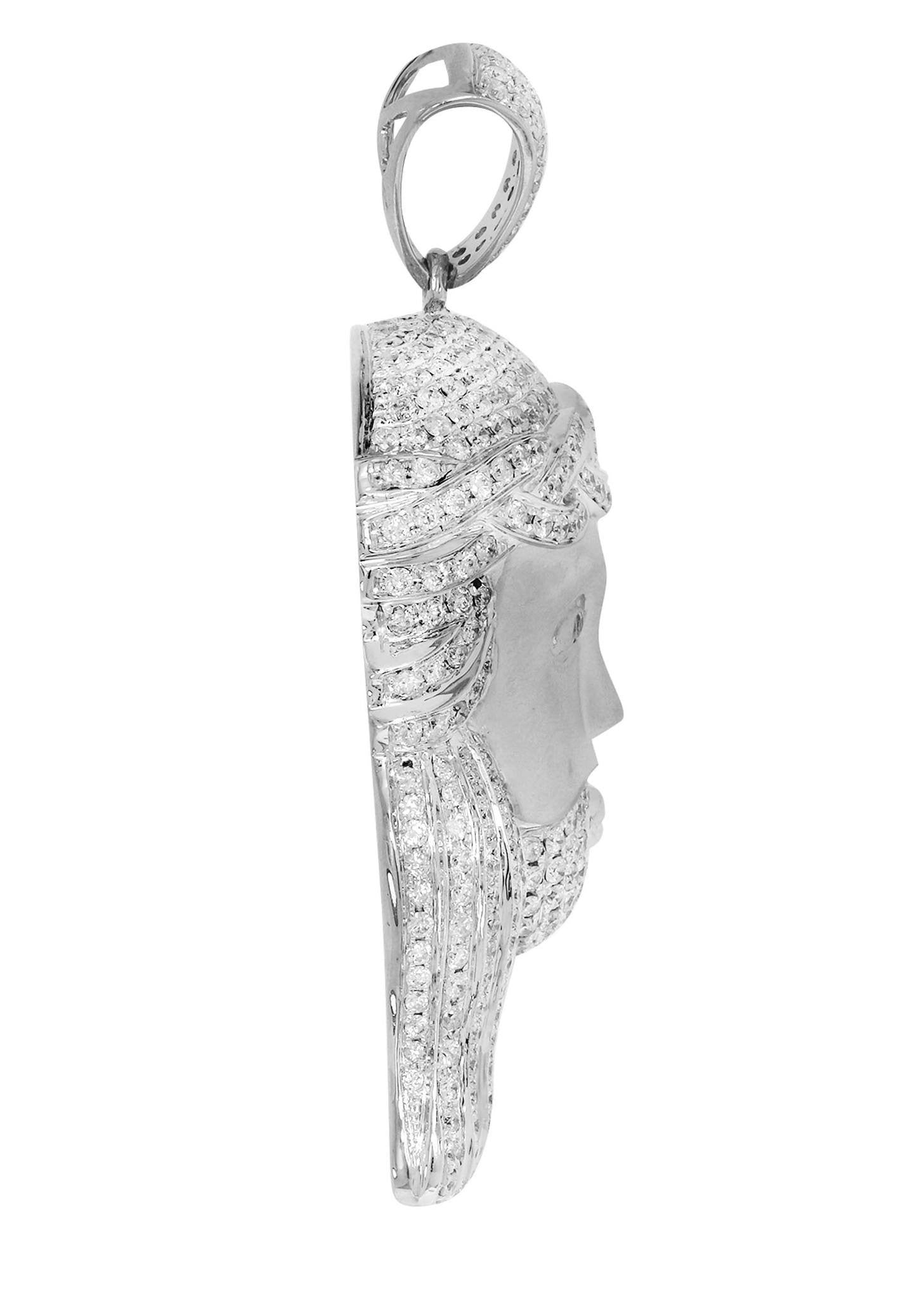 Jesus Head Pendant In 14K White Gold Weighing 64.06 Grams With 6.3 Carats Of Colorless / Near Colorless Eye Clean quality Diamonds