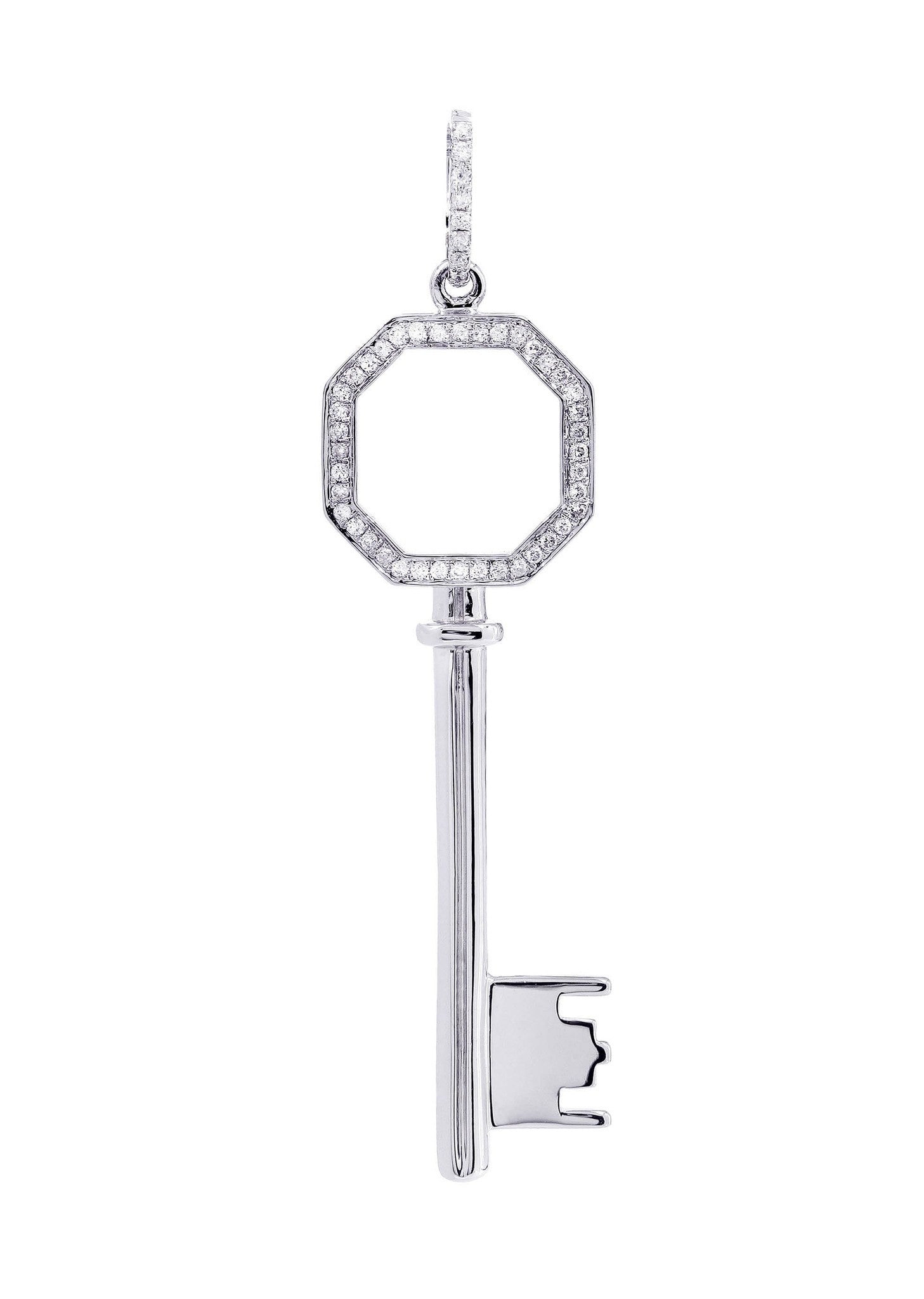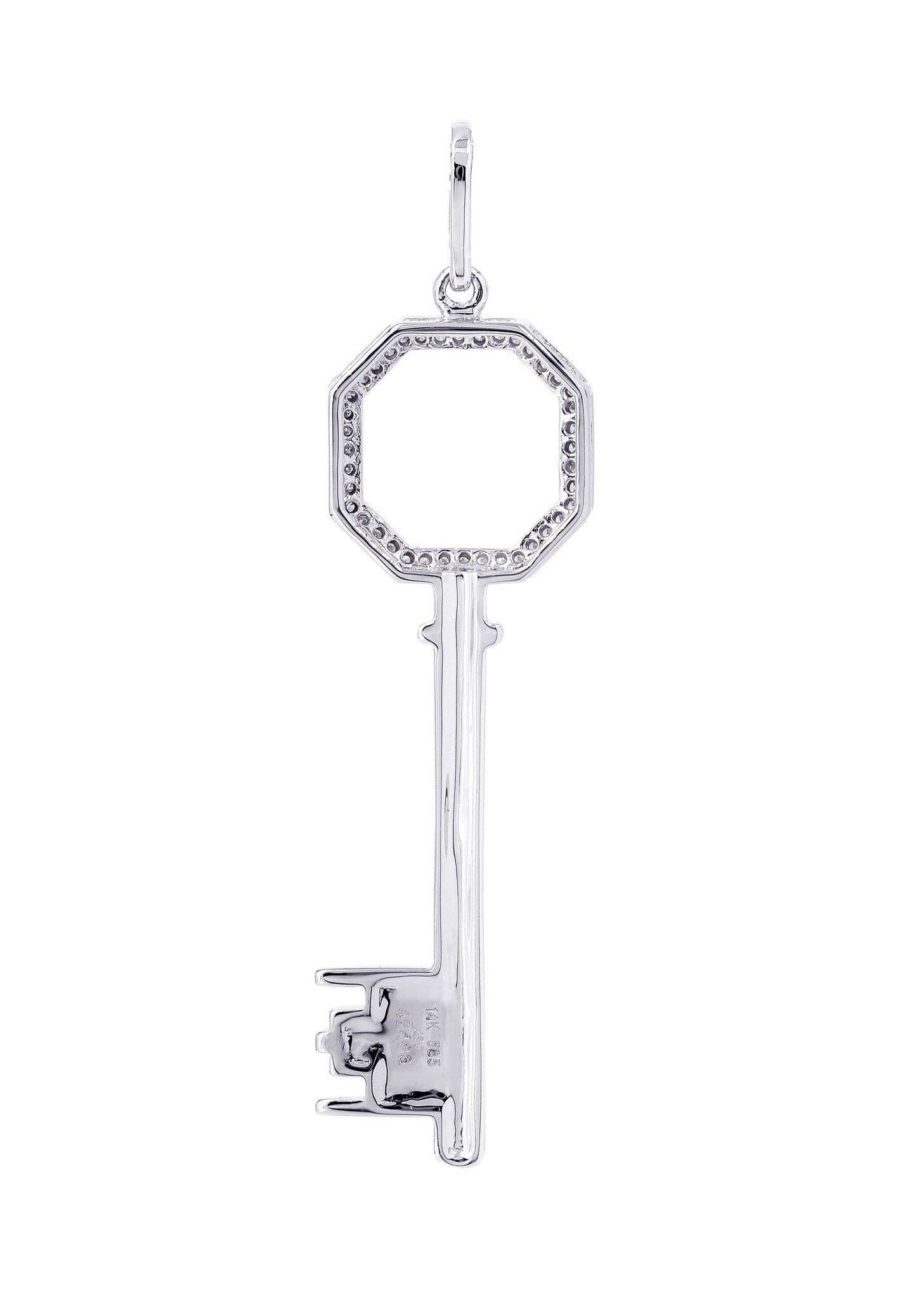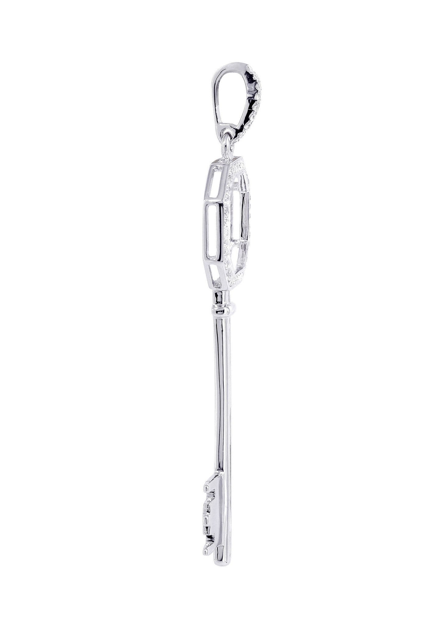 14K White Gold Key Pendant With Approximately 0.14 Carats Of Colorless / Near Colorless Eye Clean quality Diamonds And 2.51 Grams. This Pendant Has An Average Length Of 50 Mm And A Width Of 13 Mm.