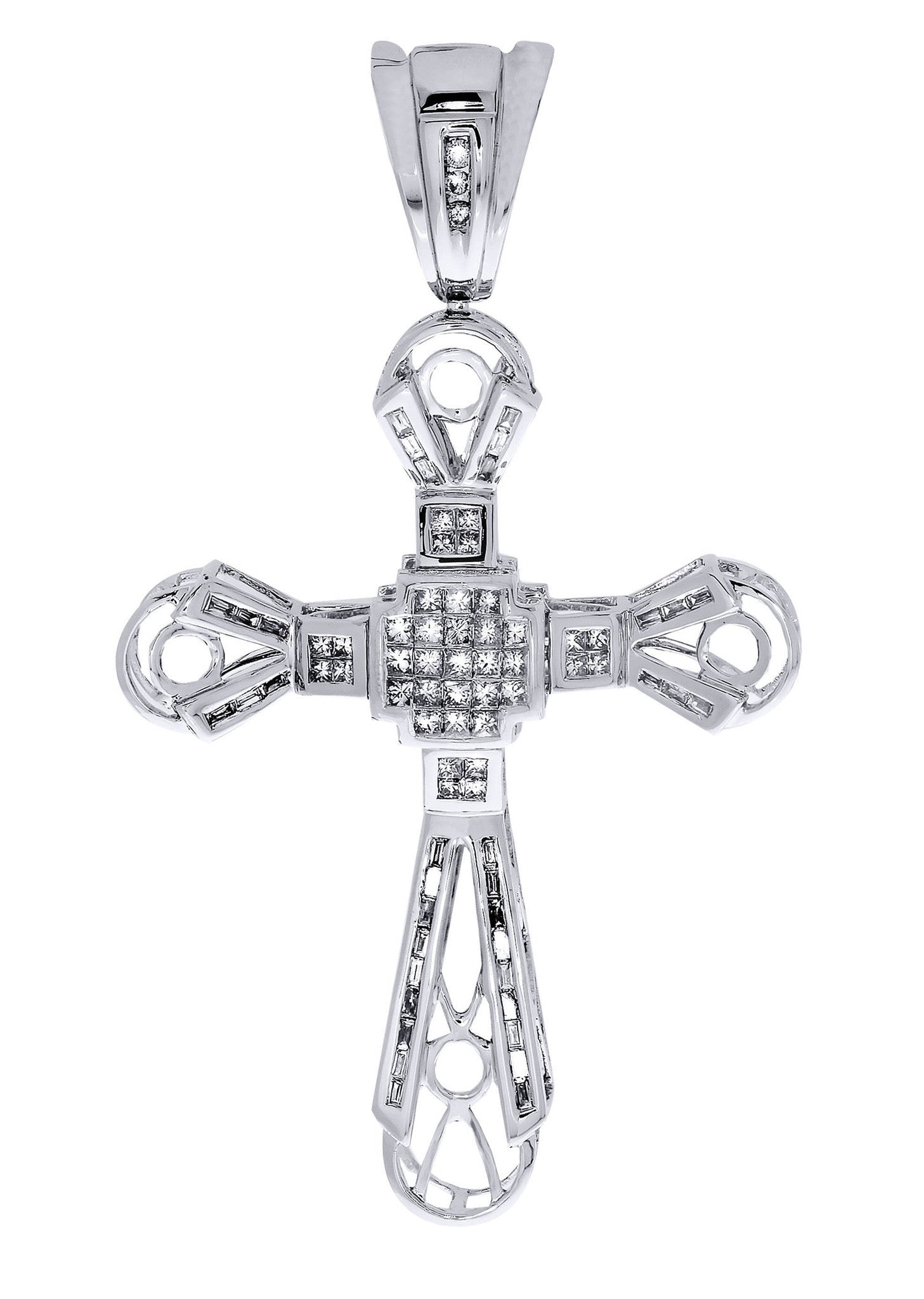 14K White Gold Cross Pendant With Approximately 1.27 Carats Of Colorless / Near Colorless Eye Clean quality Diamonds And 11.31 Grams