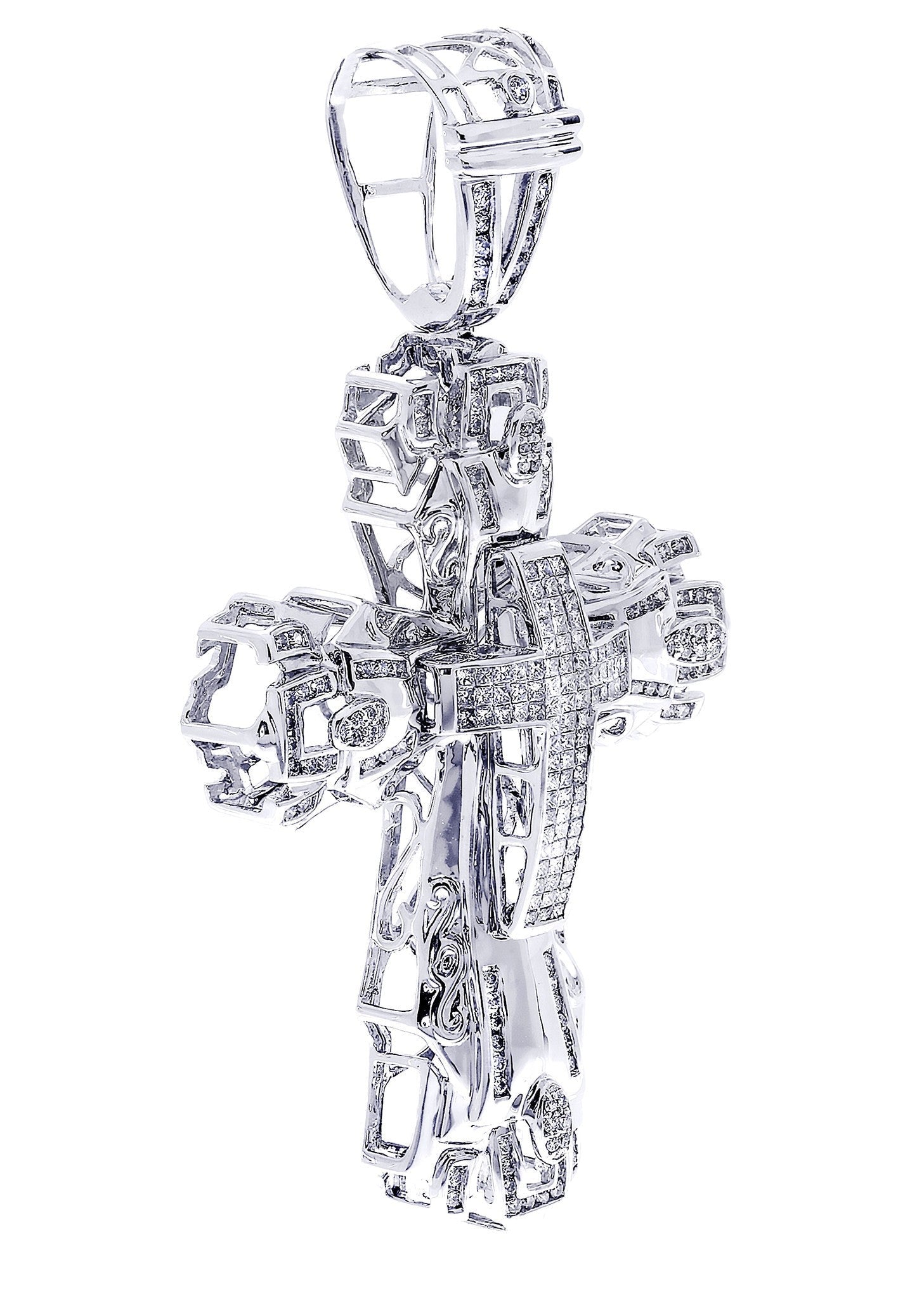14K White Gold Cross Pendant With Approximately 1.98 Carats Of Colorless / Near Colorless Eye Clean quality Diamonds And 24.56 Grams