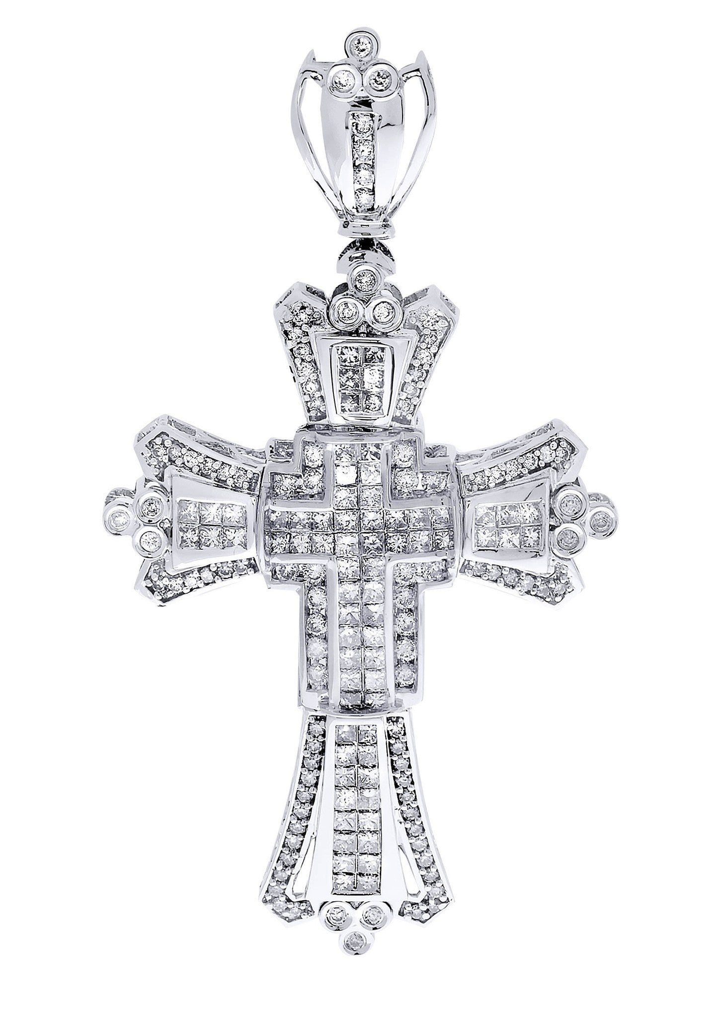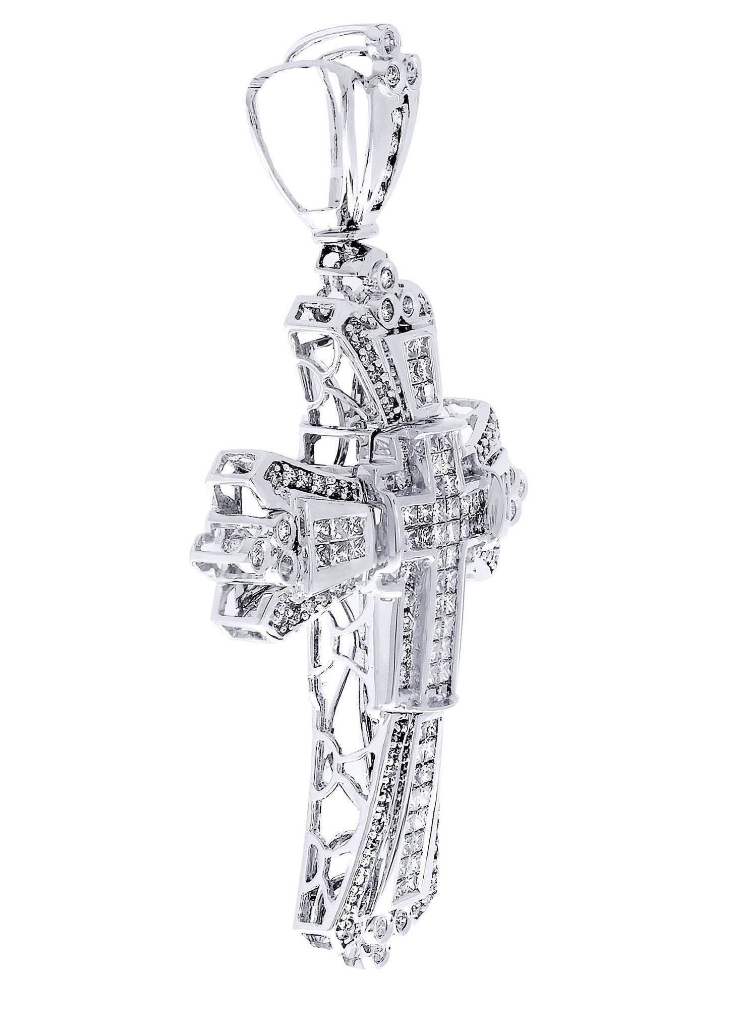 14K White Gold Cross Pendant With Approximately 3.27 Carats Of Colorless / Near Colorless Eye Clean quality Diamonds And 15.41 Grams