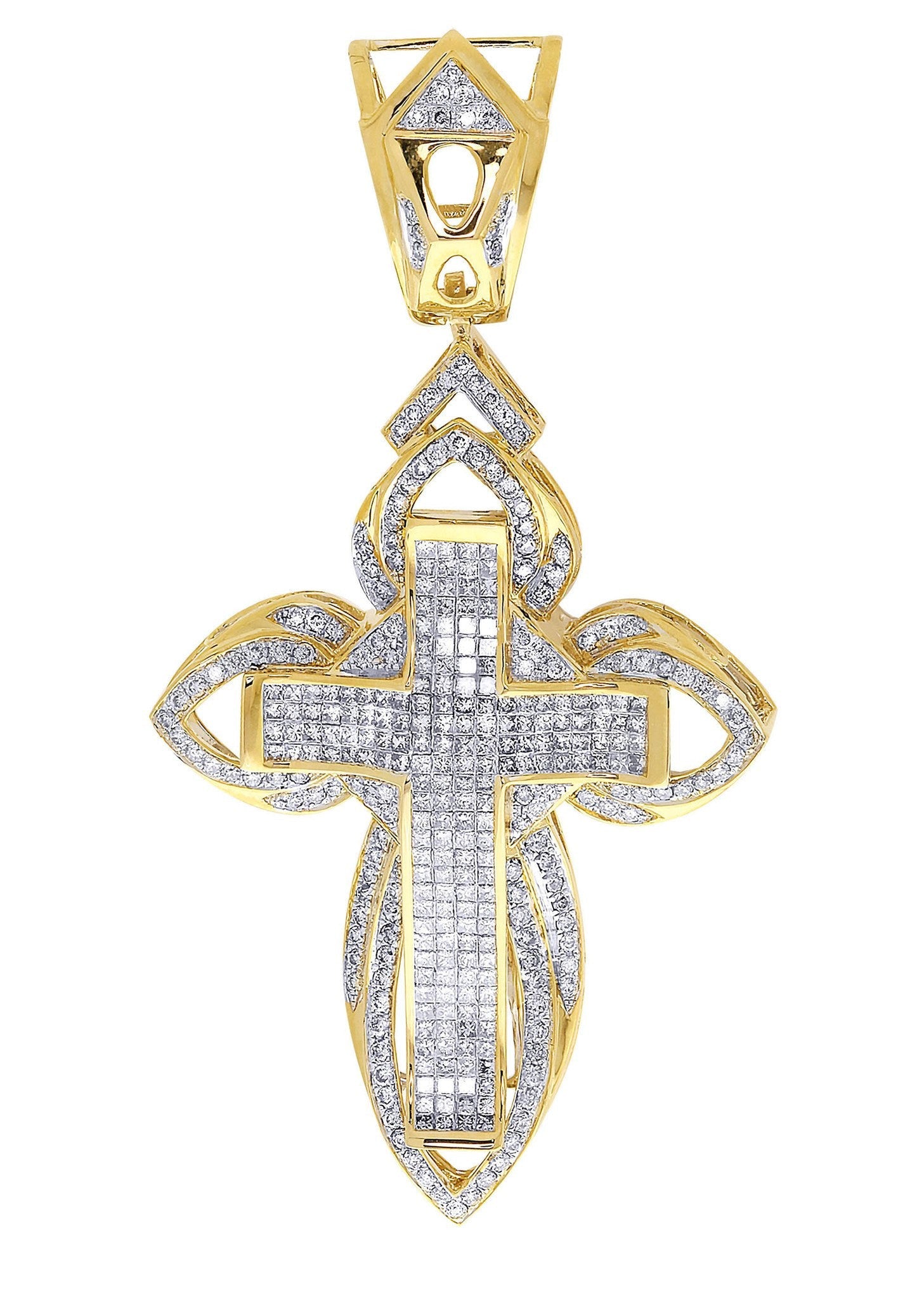 14K Yellow Gold Cross Pendant With Approximately 3.36 Carats Of Colorless / Near Colorless Eye Clean quality Diamonds And 16.76 Grams