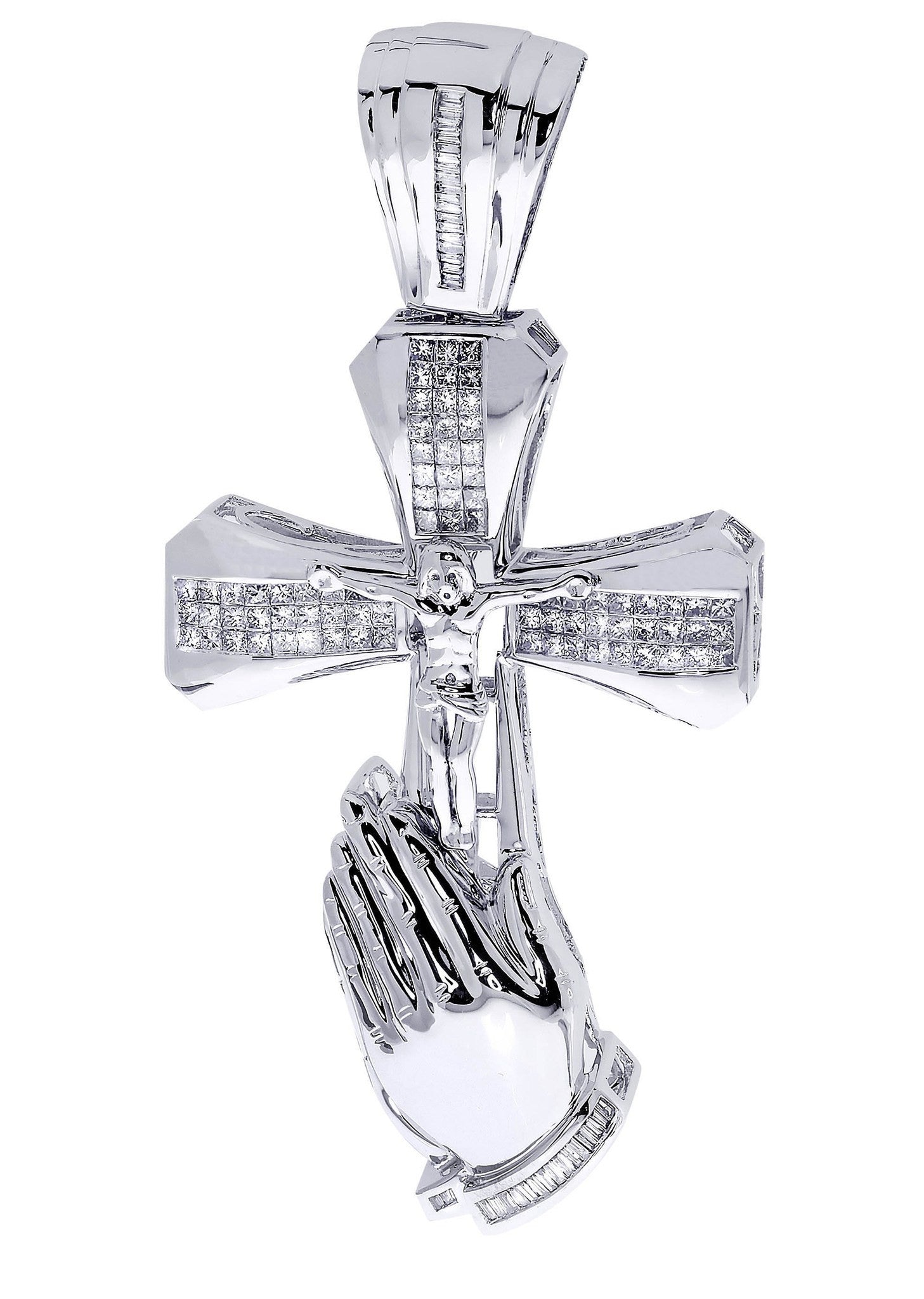 14K White Gold Cross Pendant With Approximately 3.6 Carats Of Colorless / Near Colorless Eye Clean quality Diamonds And 33.37 Grams