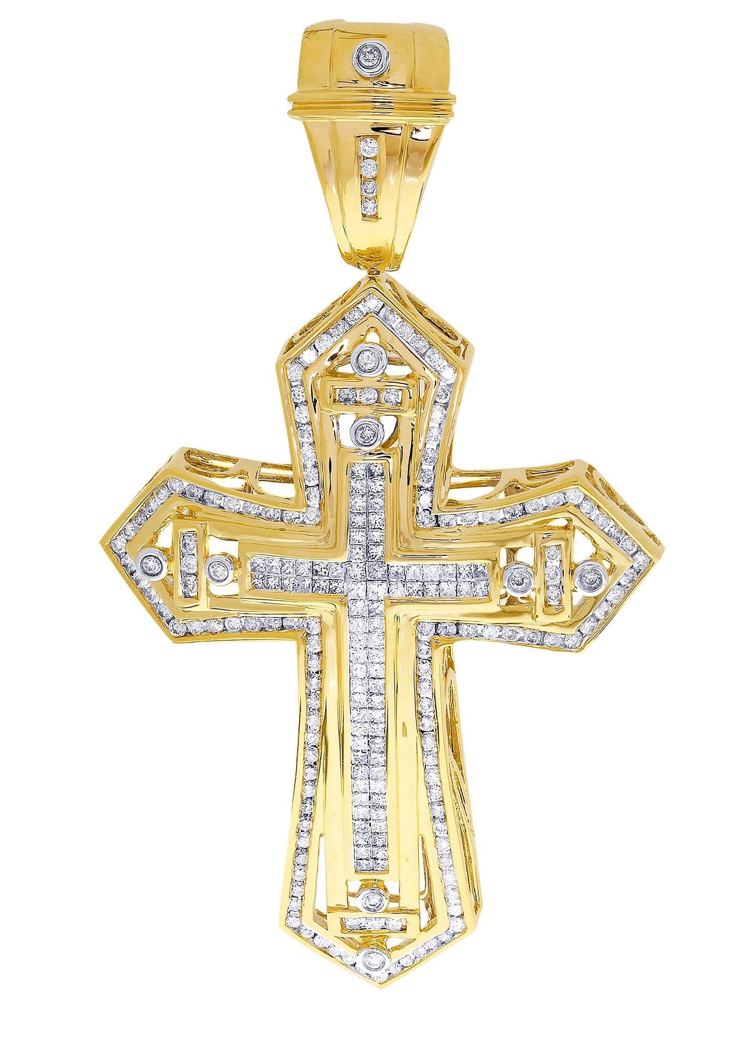 14K Yellow Gold Cross Pendant With Approximately 4.08 Carats Of Colorless / Near Colorless Eye Clean quality Diamonds And 31.76 Grams