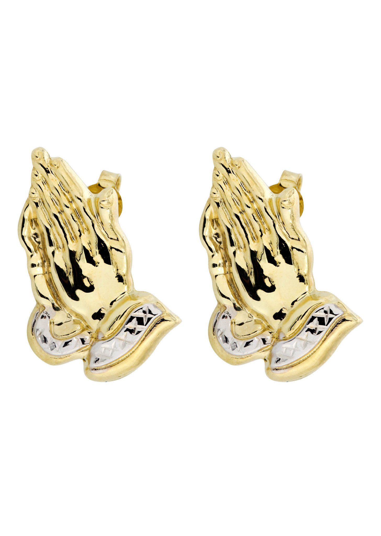 Praying Hands 10K Yellow Gold Earrings | Appx 1 Inch Wide